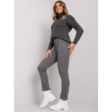 Black and gray checkered pants. Extras: StrapMaterial: 95% polyester, 5% elastanewashing method: machine wash at 30CThe model is wearing a size 36. Model's measurements: height 173 cm, bust 97 cm, waist 67 cm, hips 95 cm. Measurements of size 36 pants measured flat: waist width 35 cm, waist height 26 cm, total length 96 cm