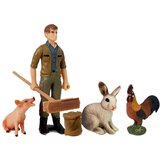 Farm Figurines Set 5 elementsBeautifully made with the utmost attention to detail, the figurines of farm elements will enlarge the collection of every small collector. Each figurine has been carefully cast from plastic and very carefully painted, which faithfully reflects the real look of an animal, character or object. The figurines will allow each child to create their own farming. Collecting village figures can become a beautiful passion. Farmer figurines have the ability to remove an item from your hand.You choose: a farmer with a pitchfork, two sheep, a bunny and hay farmer with a broom, pig, rooster, bunny and a sack of feedAfter the purchase, please inform about the selection of the set in the note to the order.Height of selected figures: farmer with a pitchfork or a broom: 9.5 cm sheep: 5 cm, 3.5 cm pig: 4 cm rooster: 6 cmBox dimensions:16 cm x 10 cm x 11.5 cmThe toys are intended for children over 3 years of age. Figures are CE certified and comply with the EN 71 standard. Packed in a cardboard box, making it perfect for a gift.