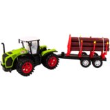 Farm Tractor With Wood Trailer 9 Bali Trees Green DriveA large farm tractor with a tree trailer is an impressive toy that will surely delight every little farming enthusiast. Made of safe and solid materials, the tractor is ready for intense and longlasting fun. Its impressive size adds realism and makes the game even more exciting.The tractor is equipped with a large trailer with 9 logs of wood on it. This functionality allows children to realistically simulate loading and unloading, which not only develops their imagination, but also motor coordination and manual skills. The child can play the role of a farmer, organizing the transport of wood, which introduces educational elements into the game, teaching about farm work and logistics.The detailed workmanship of the tractor and trailer attracts attention and makes the toy look like real agricultural equipment. Attention to details, such as realistic wheels, handles and loading mechanisms, add authenticity and engage children in even more creative play. Solid materials from which the toy is made guarantee safety and durability, which is extremely important during intense play.A large farm tractor with a tree trailer is the perfect gift for any child who loves to play outdoors or at home, playing out various scenarios. This toy not only provides a lot of fun, but also supports the development of social, manual and cognitive skills. Thanks to it, children can discover and imitate life on a farm, which is not only fun but also educational.Tractor dimensions:40cm x 23cm x 22cmTrailer dimensions:40cm x 16cm x 20.5cmSize of the package:83cm x 24.5cm x 24cmIt is CE certified and complies with the EN71 standard. Intended for children over 3 years of age.