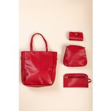 Imitacija kože. Zatvaranje patentnim zatvaračem. Set od 4 torbica. Sastav materijala: vanjski dio: 100% poliuretan, unutarnji dio: tekstil Boja: Bordo