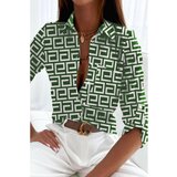 Kvalitetan i udoban materijal. Umjetni saten. S uzorkom. Dugi rukavi. Klasični ovratnik. Kopčanje gumbima po cijeloj dužini. Sastav materijala: 100% poliester Proizvod je u potpunosti izrađen u Italiji. Boja: Zelena