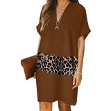 Lagan i kvalitetan materijal. Duboki "V" izrez. Kratki rukavi. Uzorak leoparda. Širi model. Dužina do sredine bedara. Sastav materijala: 95 % poliester, 5 % elastin. Artikl je u cijelosti proizveden u Italiji. Boja: Smeđa Dužina: Mini