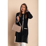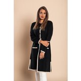Kvalitetno i ugodno pletivo. U dvobojnoj kombinaciji. Dugi rukavi. Okrugli ovratnik. Kopčanje gumbima sprijeda. Džep na prednjoj strani. Dužina do sredine bedara. Sastav materijala: 50% vuna, 50% akril Proizvod je u potpunosti proizveden u Italiji. Boja: Crna Materijal: Vuna