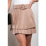 Kvalitetan i udoban materijal. Jednobojna. Plisirana. Širok model. Visok struk. S ukrasnim pojasom. Duljina do sredine bedra. Sastav materijala: 95% poliester, 5% elastan Boja: Smeđa Dužina: Mini