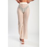 Kvalitetan i udoban materijal. Prozirna tkanina. Visok i rastezljiv struk. Ravan kroj. Sastav materijala: 82% najlon, 18% elastan Boja: Bijela Dužina: Duge
