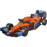 OpisF1 kockice za trkaće automobile, narančasta 278 kom.Set od 278 kocki za samostalnu izgradnju plavonarančastog trkaćeg automobila. Igračka namijenjena djeci od 6 godina. Blokovi i elementi automobila izrađeni su od visokokvalitetne plastike. Automobil ima pomične elemente, poput spojlera i upravljivih kotača. Set sadrži slikovne upute. Slaganjem kocki kod djece se razvijaju manuelne vještine, prostorna imaginacija i strpljenje.Specifikacija: set od 278 kockica, pomični spojler, okretni kotači, gumeni kotači, imitacija interijera trkaćeg automobila, vjerna reprodukcija pravog trkaćeg automobila, namijenjeno djeci od 6 godina starosti, uključene slikovne upute.Dimenzije dimenzije pakiranja cca. 32 cm x 4,5 cm x 23 cm.Sadržaj seta set građevinskih blokova, slikovne upute, šareno pakiranje.