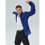 Men's linen shirt. Classic cut. Collar and button fastening. Long sleeves with cuff. Monochrome.