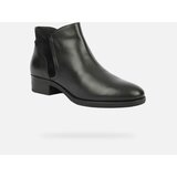 Black Geox Felicity women's ankle boots with a smooth leather surface and an elastic panel for easy slipons. Smooth leather abrasionresistant and easy to clean, suitable for both formal and casual wearElastic panel on the sides allows quick to put on without unfastening, saves time when getting dressedLow heel provides stability and reduces foot fatigue during allday walkRespira technology perforated outsole wicks away sweat and keeps feet dry even during prolonged activityAnkle height protects
