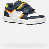 Boys' Geox Arzach sneakers in dark blue will impress with their sporty design. The white upper is complemented by dark blue overlays, neon green accents on the heel and collar, and a distinctive orange stripe on the side. Practical fastening with two dry zips, the upper of which bears a neon green GEOX inscription, ensures easy putting on.The sneakers are equipped with the following technology:Respira technology ensures optimal breathability thanks to a special membrane in the sole that wicks away moisture and prevents water from penetrating insidePerforated upper promotes air circulation and keeps feet dry and comfortableThe sporty design and practical features of these sneakers are ideal for active boys. The combination of colors and comfortable Velcro fastening allows easy putting on even during a rush to school or the playground.Thanks to their versatility and technological processing, these sneakers are the perfect choice for everyday wear. Give your boy maximum comfort and style in one.