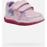 The cute Geox girls' sneakers in pink impress with a luminous element in the translucent part of the sole, which creates purple light effects when walking. The shoe is decorated with a blue narwhal with a pink horn and a decorative white pattern. A practical twoVelcro fastening with a polka dot design ensures easy putting on.The sneakers are equipped with the following technologies:Respira technology ensures optimal breathability thanks to a special membrane in the sole that wicks away moisture and prevents water from penetrating insideIlluminated elements in the sole brighten up every stepThe inner part of the shoe is lined with a pleasant purple material for maximum wearing comfort. The twostrap fastening allows you to easily adjust the width of the shoe as needed.These stylish sneakers are the perfect choice for active girls who appreciate both practicality and fashionable design with cute details.