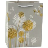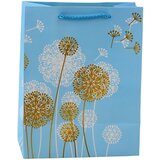 GIFT BAG WITH DANDELION MOTIF AND GOLD ACCENTSAn elegant gift bag with a subtle and natural design is a great choice for any occasion from birthdays and anniversaries to weddings and family gatherings. The bag is distinguished by a beautiful dandelion motif, which creates a delicate and harmonious effect. Gold and white accents give the whole thing a luxurious look, emphasizing the uniqueness of the gift.Made of highquality decorative cardboard, the bag is durable and resistant to damage. The string handles in a color matched to the motif are strong and comfortable, which ensures comfortable carrying of even heavier gifts.Available in four elegant colors: mint, gray, blue and pink, the bag fits perfectly into the latest decorative trends. Its universal character makes it suitable for both family celebrations and more formal meetings.With dimensions of 23 x 18 x 10.5 cm, the bag is perfect for wrapping both larger and smaller gifts, guaranteeing stylish and elegant packaging.The collective package contains 12 pcs. Bags are sold individually.SPECIFICATION:Type: Gift bagTheme: Dandelions with gold and white accentsColours: Mint, grey, blue, pinkBag dimensions: 23 x 18 x 10.5 cmMaterial: Decorative cardboardHandles: String, colourcoordinatedStyle: Subtle, natural, elegantPurpose: Birthdays, anniversaries, weddings, special eventsSET CONTENTS:1 gift bag