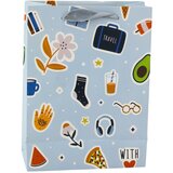 GIFT BAG WITH STICKER MOTIFA gift bag with a sticker motif that impresses with its vivid colors and modern style! The bag is decorated with various graphics in the form of colorful stickers, such as hearts, lips, fruits, inscriptions and youth and lifestyle symbols. This pattern makes the bag look exceptionally fashionable and original.Made of durable decorative cardboard, the bag ensures safe carrying of even heavier gifts. Strong string handles in colors matched to the graphics guarantee convenience and comfort of use. Thanks to its universal style, the bag is perfect for gifts for young people, teenagers, but also for various occasions from birthdays to friendly meetings.Thanks to its dimensions of 23 x 18 x 10.5 cm, the bag is great for wrapping both smaller and mediumsized gifts. Its colorful and energetic patterns make it ideal for birthday parties, social gatherings, and also as a stylish addition to a gift.The collective package contains 12 pcs. Bags are sold individually.SPECIFICATION:Type: Gift bagTheme: Sticker fashionable graphics, inscriptions, colorful elementsColors: Pink, mint, light blue, peachBag dimensions: 23 x 18 x 10.5 cmMaterial: Decorative cardboardHandles: String, colorful (pink, blue, mint, orange)Style: Youthful, modern, lifestylePurpose: Birthdays, social gatherings, gift for a teenagerSET CONTENTS:1 gift bag with a sticker motif