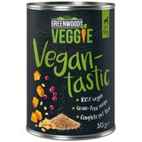 Želite li je upoznati? Greenwoods 100 % veganska mokra hrana za pse. Očekivano božanstveno ukusna. Kratak sažetak vrlo kvalitetnih sastojaka: hranjiva kvinoja, ukusna bundeva, pažljivo pripremljena vučika i izvrsne brusnice. Sve to pa čak i više od toga dio je ove recepture bez žitarica. Potpuna hrana koju će vaš ljubimac obožavati. Bogata je hranjivim tvarima, okusima i naravno bjelančevinama. Bilo koji proizvodi životinjskog porijekla, punila ili umjetni dodaci? Ne, ne dodaju se u našu konzervu! Prema tome ako tražite beskompromisno dobar obrok poslužite hranu Greenwoods. Jednostavno je odlična: 100 % veganska vrlo kvalitetni proteini iz kvinoje, graška, leće i vučike sadržava sastojke navedene na konzervi, ništa više ni manje receptura bez žitarica potpuna hrana za odrasle pse proizvedena u Njemačkoj Vegantastic u ponudi je i standardnom pakiranju od 6 x 375 g kao i u ekonomičnom pakiranju od 12 ili 24 konzerve.