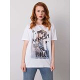 White women's cotton tshirt. Material: 100% cottonwashing method: machine wash at 30CThe model is wearing a size S. Model's measurements: height 165 cm, bust 83 cm, waist 64 cm, hips 90 cm. Dimensions of a tshirt in size S measured flat: armpit width 49 cm, total length 64 cm
