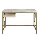 Ovaj radni stol s metalnim nogama ne odie samo sofisticiranou, ve prua i izvrsnu potporu. Kombinacija zlatne i bijele boje stvara privlanu estetiku koja se lako uklapa u svaki stil ureenja. Bez obzira preferirate li minimalistiki ili luksuzniji izgled, na radni stol prilagodit e se vaem jedinstvenom ukusu.