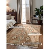 Tepih Kamal Dune brenda Nouristan unijet će boje i uzorke afganistanske kulture u vašu dnevnu sobu ili spavaću sobu. Ovaj ručno tkani kilim tepih s geometrijskim uzorkom u prigušenim tonovima bež i svijetloplave boje dvostran je i izrađen od 80% vune i 20% pamuka. Tepih, dimenzija 160 x 230 cm, ima čvrst flor i visinu flora od 3 mm. Prirodna vlakna korištena u ovom tepihu mogu se u početku linjati. S vremenom i redovitim usisavanjem, ovo otpuštanje vlakana s novog tepiha će se smanjiti.