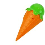 Igra spretnosti Sladoled u vafl. Šarena piramida složite toranj Uzbudljiva arkadna igra za cijelu obitelj osigurat će puno zabave za sve. Jer tko ne voli sladoled? Ledeni toranj san je i malih i velikih gurmana ovih slastica! Cilj igre je izgraditi što veći ledeni toranj, a zatim ga održati okomitim! Pravila igre: Postavite plavi osnovni gumb na smeđi konus pomoću crvene hvataljke, a zatim igrač pokušava samostalno postaviti sljedeći gumb crvenom hvataljkom. Pobjeđuje osoba koja sastavi top bez ikakvih neravnina! Igra se može igrati i protiv vremena, koristeći pješčani sat, igrači mjere vrijeme kako bi složili toranj od sladoleda u najkraćem mogućem roku! Najmlađi igrač prvi slaže kockice, a zatim dodaje žlicu igraču s lijeve strane. Kada je na njemu red, igrač drži kornet i stavlja jednu kuglicu na sladoled. Nakon što postavi jedno ravnalo, dodaje kornet sljedećem igraču. Toranj postaje klimaviji. Budite oprezni, ako se igračev toranj prevrne tijekom dodavanja, igrač koji dodaje kornet bit će izvan igre. Nastavite igrati i završite s ostalim igračima dok ne ostane samo jedan igrač koji je konačni pobjednik. Komponente kompleta: rog kanta / grabilica pješčani sat 9 kuglica leda naljepnice za ukrašavanje konusa Dimenzije elemenata seta: visina roga: 11,5 cm duljina hvataljke: 17 cm gumb: 7 cm x 4,5 cm Dimenzije kutije: 25 cm x 20 cm x 7,5 cm Vesela igra za malu i veliku djecu, pružit će puno uzbuđenja i smijeha. Set je u cijelosti izrađen od plastike. Igra ima CE certifikat i namijenjena je djeci starijoj od 3 godine. Igru mogu igrati 2 do 4 osobe.