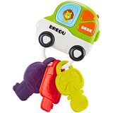 INTERAKTIVNE TIPKE SVJETLO, ZVUK I IGRAČKA ZA GRICANJEInteraktivne tipke sa šarenim daljinskim upravljačem prekrasna su opcija za malu djecu, kombinirajući nekoliko edukativnih i senzornih funkcija. Zahvaljujući kombinaciji mekih elemenata za žvakanje, svjetlosnih i zvučnih efekata te zvečke, igračka postaje neizostavan pratitelj za svakodnevnu igru.Daljinski upravljač u obliku automobila ima tri velika, šarena gumba koji aktiviraju zabavne zvukove i trepćuća svjetla. Pritiskom na gumbe djeca razvijaju finu motoriku, motoričku koordinaciju i kognitivne sposobnosti. Šareni gumbi s mekom teksturom također funkcioniraju kao igračka za glodanje, pružajući olakšanje tijekom nicanja zubića.Izrađena od sigurnih i izdržljivih materijala, ergonomski oblik igračke savršen je za male ruke. Zahvaljujući atraktivnom obliku i funkcijama, ne samo da zabavlja već i podržava djetetov razvoj od rane dobi. Savršena je ideja za poklon koja će oduševiti i dječake i djevojčice.TEHNIČKI PODACI: Dimenzije pakiranja: 21 x 15 x 6 cm Funkcije: svjetlo, zvuk, zvečka, glodalica Napajanje: 2x 1,5 V AA baterije Elementi: šareni daljinski upravljač + 3 tipke Materijal: plastika + mekana gumaSADRŽAJ SETA: Daljinski upravljač u obliku automobila 3 šarena ključa