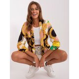Black and beige jacket with ruffled sleeves. Accessories: sewnin shoulder pads Product code: DHJMA7684B3.95PDominant pattern: printStyle: ElegantOccasion: Casual, Work, Date, Party The model is wearing a size S. Model's measurements: height 176 cm, bust 85 cm, waist 64 cm, hips 92 cm. Measurements of the jacket in size S measured flat: armpit width 50 cm, sleeve length 45 cm, total length 73 cm.