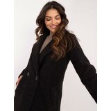 The model is wearing a size S/M. Model's measurements: height 173 cm, bust 85 cm, waist 62 cm, hips 95 cm. Measurements of the one size jacket measured flat: armpit width 48 cm, sleeve length 58 cm, total length 75 cm.