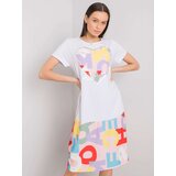 White and light pink loose dress with prints. Material: 1 Material: 100% cotton, 2 Material: 55% Polyester, 45% Viscosewashing method: machine wash at 30CThe model is wearing one size. Model's measurements: height 173 cm, bust 81 cm, waist 60 cm, hips 90 cm. Measurements of the dress in one size measured flat: width under the armpits 46 cm, total length 97 cm