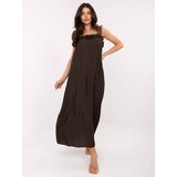 The model is wearing one size. Model's measurements: height 173 cm, bust 89 cm, waist 65 cm, hips 91 cm. Dimensions of the dress in one size: armpit width 31 cm (flat), armpit width 55 cm (stretched), waist width 60 cm, hip width 64 cm, total length 143 cm.
