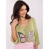 The model is wearing one size. Model's measurements: height 173 cm, bust 85 cm, waist 62 cm, hips 95 cm. Measurements of the one size sweater measured flat: width under the armpits 58 cm, sleeve length 23 cm (from the armpit), total length 63 cm, width at the hips 50 cm.
