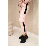 We present you a set of sweatshirts and pants. The set has stripes. Sweatshirt with pockets and a hood. The pants have pockets. The set is made of high quality material. The size is universal and will be suitable for ladies wearing sizes S M or L.TURKISH PRODUCTIONMaterial composition:90% Cotton10%ElastaneSweatshirt dimensions:Armpit width: 54 cmTotal length: 63 cmSleeve length from armpit: 46 cmSleeve length from the shoulder: 68 cmPants dimensions:Waist width: 30 cm/after stretching: 43 cmLeg