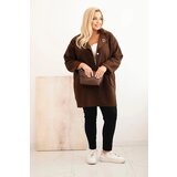 Kesi Włoski Plus Size women's coat with wool and pockets shearling brown cijene