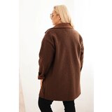 Kesi Włoski Women's Plus Size coat with wool and pockets chocolate Slike