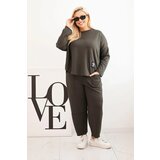 Kesi Włoski Women's Plus Size set butter sweatshirt and pants with pockets khaki