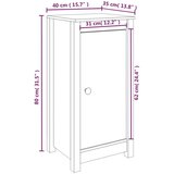 Uživajte u urednom dnevnom boravku uz ovu drvenu komodu! Praktična komoda zadovoljit će vaše različite potrebe i idealan je dodatak vašoj prostoriji. Masivna borovina: Masivna borovina prekrasan je prirodni materijal. Borovina ima ravne godove, a čvorovi daju materijalu njegov prepoznatljivi, rustični izgled.Dovoljno prostora za pohranu: Ormarić ima dovoljno prostora za pohranu kako bi vaše razne svakodnevne potrepštine bile dobro organizirane i na dohvat ruke.Čvrsta površina: Čvrsta površina komode idealna je za izlaganje ukrasnih predmeta, okvira s fotografijama ili biljaka u posudama.Dvije mogućnosti montaže: Vrata ormarića mogu se montirati lijevo ili desno prema vašim potrebama. Upozorenje:Kako bi se spriječilo prevrtanje, ovaj proizvod mora se upotrebljavati s uključenim priborom za montiranje na zid.Napomena:Svaki proizvod dolazi s priručnikom za sastavljanje u kutiji radi lakšeg sastavljanja.
