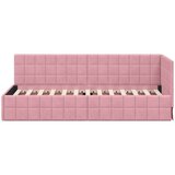 Krevet s kutnim dizajnom od baršuna super spaja moderni stil i luksuz. S vrhunskim majstorstvom i izgledom, ova konstrukcija je odlična za jednostavnost, savršena je za svakoga tko želi dodati malo klase bez gubitka funkcionalnosti u spavaćoj sobi. Prekrasna baršunasta tkanina čini prostor toplim i privlačnim, lako se uklapa u većinu dekora. Savršeno je rješenje za gradske ljude ili sve koji vole stylish namještaj kombinira šarm i praktičnost.