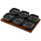 Set za posluživanje Essentials bit će izvrstan pomoćnik za vaš catering. Idealan je za elegantno posluživanje raznih grickalica, umaka ili malih predjela. Set uključuje četvrtaste porculanske zdjele i čvrstu dasku za rezanje. Zdjele su dizajnirane da se mogu prati u perilici posuđa i mikrovalnoj pećnici. Dasku za rezanje najbolje je prati ručno kako bi se sačuvala njezina ljepota. Svaka zdjela ima dimenzije 9,5 x 9,5 x 4 cm, a daska za rezanje ima dimenzije 33 x 21 x 1,5 cm.