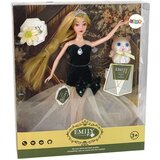 Lutka Emily s dugom kosom i mačićem Predstavljamo nevjerojatnu lutku Emily s dugom plavom kosom i elegantnom tijarom. Lutka nosi elegantnu haljinu gornji dio je u intenzivnoj nijansi tamnozelene, donji dio je od tila s šljokicama. Cijela je ukrašena zelenom mašnom sa spektakularnim šljokicama, što joj daje jedinstven karakter. Međutim, to nije sve što ovaj komplet nudi! U društvu lutke naći ćete i odgovarajući cvijet koji naglašava njezin jedinstveni izgled. Lutka ima i svog malog prijatelja: bež mačića sa slatkim licem, koji također nosi ukrašenu mašnu. Emily nosi crne čizme s nježnom ružom za potpun i elegantan izgled. Cijeli set je pakiran u šarmantnu kutiju, koja je savršena kao poklon za male ljubitelje igre s lutkama i životinjama. Pozivamo vas da unesete magiju, maštu i kreativnost u igru svog djeteta s lutkom Emily i njezinim sveobuhvatnim setom. Razvijte kreativno razmišljanje, inspirirajte se za stvaranje nezaboravnih priča i uživajte u zajedničkim trenucima punim radosti i kreativne zabave! Emilyne mjere: 30 cm x 7 cm x 4 cm Dimenzije mačića: 6 cm x 4 cm x 5 cm Veličina paketa: 33 cm x 29 cm x 6 cm Proizvod ima CE certifikat i u skladu je s normom EN71. Proizvod je namijenjen djeci starijoj od 3 godine.