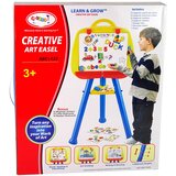 Igra s magnetnom pločom odlična je za razvoj svakog mališana! Potiče maštu i manuelne vještine, a pomaže i u učenju kombiniranja boja ili pisanja slova i brojeva. Vjerujemo da će ovaj predmet promijeniti djetetov pristup učenju prva slova ispisana na ploči sigurno će razveseliti i dijete i roditelje. Velika edukativna ploča oduševit će svakog ljubitelja umjetnina. Magnetna ploča je vrlo pažljivo izrađena, što je u kombinaciji s vrhunskim materijalima i stabilnom konstrukcijom aerodinamičnog oblika čini vrlo sigurnom igračkom. Višenamjenska ploča ima dva spremnika za likovni pribor poput bojica i flomastera, kao i kukice na različitim visinama, čime se može prilagoditi visini djeteta. Premaz ploče omogućuje pisanje markerom, kao i pričvršćivanje slika, brojeva i slova pomoću magneta. Osim toga, ploča ima kopče koje se mogu koristiti za pričvršćivanje kartice za korištenje ploče kao štafelaja. Set uključuje: magnetna ploča, magnetna slova mali i veliki font, magnetni brojevi, matematički znakovi na magnetu, suhobrisiv marker sa spužvicom, spužva, šarene karte s figurama, ladice, polica za posuđe. Dimenzije elemenata ploče: odbor: 106 cm x 50 cm, područje crtanja: 38 cm x 30 cm, visina štafelaja 80 cm, veliko slovo: 3 cm, malo slovo: 2 cm. Dimenzije paketa: 55 cm x 46 cm x 9 cm