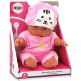 Mala lutka, ružičasta odjeća, zečja kapa Preslatka mala lutka! Ova mala lutka dimenzija 21 cm x 14 cm savršena je suputnica za svaku djevojčicu. Odjevena je u slatku ružičastu odjeću ukrašenu žutim gumbima koji je čine šarmantnom i slatkom. Naša lutka također ima šešir s ušima koji podsjećaju na zeca, što joj daje dodatni šarm. Ali to nije sve! Opremljena je pomičnim rukama, nogama i rotirajućom glavom, što djetetu omogućuje istraživanje raznih položaja i interakcija tijekom igre, a istovremeno razvija maštu i ručne vještine. Ova mala lutka nije samo igračka, već i savršen poklon za svaku djevojčicu. Zahvaljujući šarmantnim detaljima i pažljivo izrađenom dizajnu, postat će omiljeni pratitelj vašeg djeteta za duge sate zabave i zajedničkih avantura. Dimenzije lutke: 21 cm x 14 cm x 6,5 cm Veličina paketa: 19,5 cm x 14,5 cm x 10,5 cm CE certifikat je i u skladu je s EN71 standardom. Namijenjeno je djeci starijoj od 3 godine.