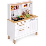 Montessori dječja kuhinja marke Meowbaby odlična je igračka za male kuhare. Ova prostrana kuhinja s realističnim detaljima i zvučnim i svjetlosnim efektima donosi puno zabave u dječju sobu. Djeca će uživati u pripremi hrane s njom, bilo sami, s braćom i sestrama ili prijateljima. Plamenici se pale kada se okrene gumb i proizvode zvukove kuhanja, što igri dodaje autentičnost. Tu su i sudoper sa slavinom, mikrovalna pećnica, otvarajući ormarići i pećnica, idealni za pohranu pribora i posluživanje pripremljenih jela. Na gornjoj polici ima mjesta za hranu i ostale dodatke. Set također uključuje lonce i pribor koji će podržati razvoj kreativnosti i fine motorike. Kuhinja je izrađena od MDFa, metala i plastike, što osigurava njezinu čvrstoću i izdržljivost za sate aktivne igre. Pogodna je za djecu od 3 godine.