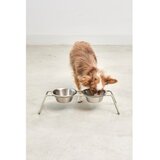 Set zdjelica za kućne ljubimce Cena Greige S tvrtke MiaCara odličan je dodatak za svakog ljubitelja dizajna. Silikonski prsten ispod zdjelica osigurava da zdjelice ostanu na mjestu i ne zveckaju. Zdjelice od nehrđajućeg čelika lako se čiste i mogu se prati u perilici posuđa. Paket također uključuje četiri plastične nožice koje sprječavaju klizanje dna tijekom obroka. Dimenzije su približno 43,2 x 15,3 x 10 cm. Svaka zdjelica od nehrđajućeg čelika ima volumen od 0,4 l i unutarnji promjer od približno 12 cm. Ovaj set idealan je za male pasmine pasa.