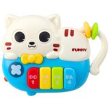 MINI PIANO CAT WITH LIGHT AND SOUND EFFECTSThis mini piano in the shape of an adorable kitten is a perfect toy for young children, combining educational and entertaining functions. Designed for children as young as 18 months, it's the perfect introduction to learning sounds, rhythm, and handeye coordination. Its colorful design, friendly appearance, and easytouse buttons encourage your little one to actively explore sounds and light.The piano has four large, colorful keys marked DO, RE, MI, FA each one produces a different sound and activates light effects, making play even more engaging. Additionally, the casing features a button to change the operating mode (light/music) and a power switch. The toy develops hearing, teaches color recognition, and introduces the first musical sounds.The contoured handle and sensory elements, such as moving rings, make the piano easier to hold and support the development of fine motor skills.SPECIFICATIONS: Type: Interactive toy piano for children Shape: Kitten with handle and colorful keys Functions: Sounds, light effects, music/light mode Keys: 4 sound buttons (DO, RE, MI, FA) Sensory elements: Colorful rings on the tail Toy dimensions: 15 x 11 x 4 cm Packaging dimensions: 19.4 x 16.7 x 4.7 cm Power supply: 2 x 1.5V AA batteries (not included) Material: PlasticPACKAGE CONTENTS: Interactive piano in the shape of a kitten Decorative packaging with a window