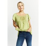 Description: Cotton women's blouse with a looser cut. Blouse with short sleeves and deep neckline. This model will certainly work as a base for everyday stylizations. The model in the picture is 177 cm tall and presents size 36.Washing instructions: Wash at 30 degrees in a gentle cycle with similar colors