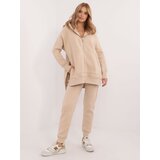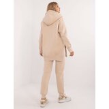 The model is wearing one size. Model's measurements: height 175 cm, bust 90 cm, waist 66 cm, hips 94 cm. Dimensions of the set in one size measured flat: width under the armpits 62 cm, length of the sweatshirt 77 cm, sleeve length 63 cm, width of the pants at the waist 32 cm (flat), width of the pants at the waist 44 cm (after stretching), length of the pants 99 cm.