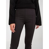 Black ribbed leggings with slits . Product code: EMSP7961.21XDominant pattern: plainStyle: Casualoccasion: casual, for work, for a date on the town The model is wearing a size S. Model's measurements: height 175 cm, bust 84 cm, waist 65 cm, hips 92 cm. Dimensions of leggings in size S measured flat: waist width 38 cm, waist height 26 cm, total length 110 cm.