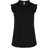Stil bluze: Bluza majica; Dizajn: Kopčanje s otvorom u obliku suze; Vrsta zatvaranja: Zatvaranje na gumbe; Uzorak: Jednobojno; Ovratnik: Podignuti ovratnik; Detalji: Izrezi, Nabori, Na volane, Drapirano/nabrano; Dodaci: Lepršava tkanina; Kroj: Normalni kroj; Dužina rukava: Bez rukava; Dužina: Normalna duljina