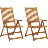 Ovaj set nagibnih drvenih vrtnih stolica s jastucima dizajniran je za poboljšanje vaše udobnosti dok se opuštate na otvorenom. Idealan je za razgovor s obitelji i prijateljima ili samo za uživanje u umirujućem sunčanju! Ove vanjske stolice napravljene su od masivnog bagremovog drva s uljnim premazom, tvrdog drva s gustim godovima. Masivno bagremovo drvo ima snagu da podnese težinu te izdrži trošenje uzrokovano vremenom. S površinom premazanom uljem, ove se stolice lako čiste vlažnom krpom. Uz to, nasloni ovih naslonjača mogu se podesiti u 5 ležećih položaja, što vam omogućuje da uvijek pronađete najugodniji položaj. Štoviše, priloženi jastuci pružaju dodatnu udobnost tijekom odmora ili objedovanja. Svaki jastuk ima elastičnu traku i dva seta vezica za snažno pričvršćivanje na stolicu.