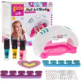 DescriptionNail Painting Set With AccessoriesA safe, interactive set for little manicurists from the age of five. The set contains everything necessary to perform a manicure. The nail dryer really dries nails and makes drying sounds, and its upper part is illuminated with lights, power supply 2 x AAA 1.5V (not included). The nail polish is safe and nontoxic and can be removed very easily after playing.Dimensions nail dryer approx. 13 cm x 7 cm x 8 cm, finger dividers approx. 9.5 cm x 3 cm x 0.5 cm, varnishes approx. 6 cm x 1.8 cm, file approx. 6 cm x 5 cm x 0.3 cm, package approx. 14.5 cm x 13.5 cm x 7.5 cm,Set contents nail dryer, three nail polishes, nail file, two finger separators, nail jewels.