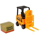Narančasti viličar Predstavljamo mali viličar koji će pružiti izvanrednu zabavu i omogućiti vam da se pretvarate da ste rukovatelj malim viličarom. Ova igračka stvorena je za najmlađe ljubitelje građevinskih i transportnih strojeva. Viličar je izrađen od izdržljive i za djecu sigurne plastike, koja je također otporna na oštećenja i jednostavna za čišćenje. Zahvaljujući svojoj veličini, idealno je prilagođen malim rukama i osigurat će udobnu i jednostavnu igru. Ovaj viličar ima pomične vilice koje se mogu podizati i spuštati. Djeca se mogu igrati podizanjem i nošenjem malih i laganih predmeta, poput blokova. Ovo je izvrsna prilika za razvoj ručnih sposobnosti, koordinacije ruku i očiju te razvoj mašte vašeg djeteta. Kolica imaju frikcioni pogon, tako da se mogu sama voziti! Set dolazi s malom kutijom koju vaše dijete može prevoziti viličarom. Elementi seta: viličar, mala kartonska kutija. Dimenzije igračke: Viličar: 11 cm x 8 cm x 5 cm Kartonska kutija: 3 cm x 4 cm x 4 cm Dimenzije pakiranja: 21 cm x 6,5 cm x 11 cm Igračke su prikladne za djecu stariju od 3 godine. Set ima CE certifikat i u skladu je s normom EN 71.