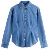 Stil bluze: Klasična bluza; Dizajn: Manžete s 1 gumbom; Vrsta zatvaranja: Zatvaranje na gumbe; Materijal: Traper; Uzorak: Jednobojno; Ovratnik: Klasični ovratnik; Detalji: Naborano; Dodaci: Kontrastni šavovi; Kroj: Uski kroj; Dužina rukava: Dugački rukavi; Dužina: Normalna duljina