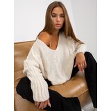 Ecru sweater with braids with oversize cut OCH BELLA . Product code: TWSWBIM903.33XDominant pattern: plainStyle: Casualoccasion: casual, city, walk, work The model is wearing one size Model's measurements: height 163 cm, bust 86 cm, waist 56 cm, hips 88 cm. Measurements of the one size sweater measured flat: armpit width 69 cm, total length 58 cm, sleeve length 55 cm.