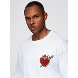 Men's Tshirt from the EXIMIO collection with a distinctive detail in the form of a decorative applique. The motif of a heart with a sword, made of glittering beads and crystals, catches the eye and gives the whole thing a distinct, fashionable character. The loose, oversize cut provides comfortable wear, and the soft knit with recycled cotton is a sustainable fashion choice.oversize cut for comfort and freedom of movementsmooth knit with soft textureapplication with beads and crystalsheart motif with a sword placed on the chestClassic rounded necklineno unnecessary details for a minimalist effectMaterial:70% cotton, 30% recycled cotton